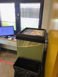 - HVIS de skal tømmes, skal der sættes pant-strips og label på, som findes i bunden af reolen. Dernæst skal d i garagen som er her:
